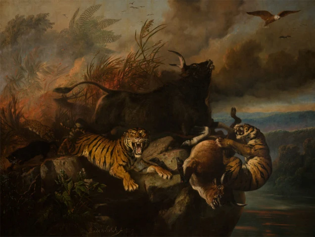 Raden Salah. Boschbrand (Forest Fire). 1849. Oil on canvas, 300 x 396 cm. Collection of National Gallery Singapore. This work has been adopted by Yong Hon Kong Foundation.